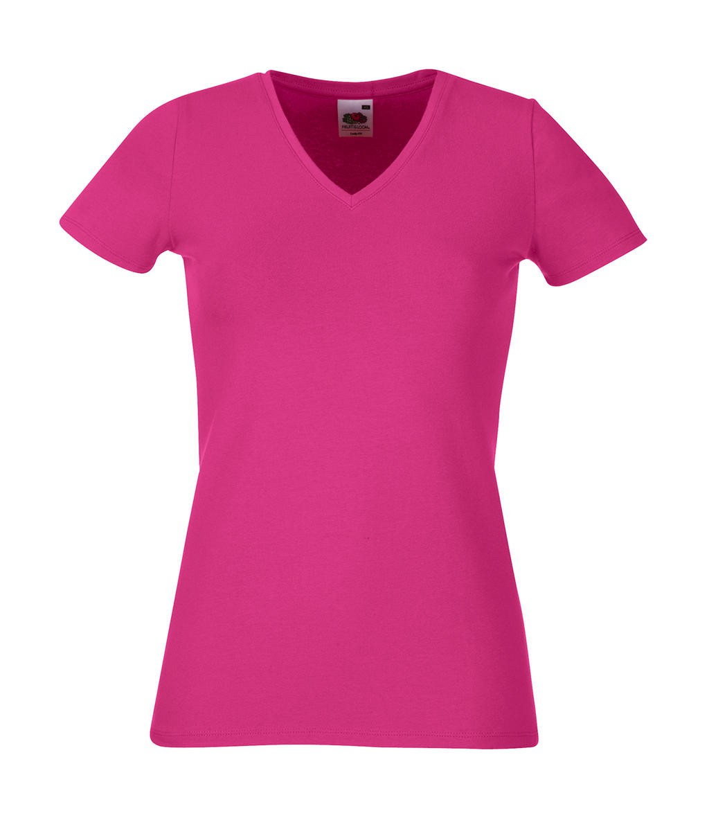·210 g/qm (White: 200 g/qm) ·95% Baumwolle, 5% Elasthan ·Weiches, elastisches Mischgewebe ·Femininer V-Ausschnitt ·Seitennähte für taillierten Schnitt.